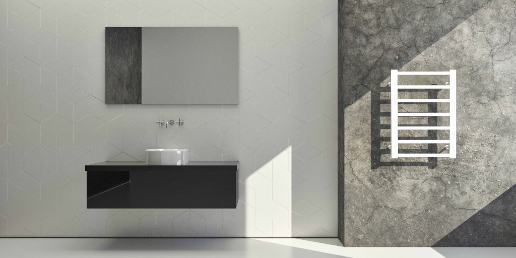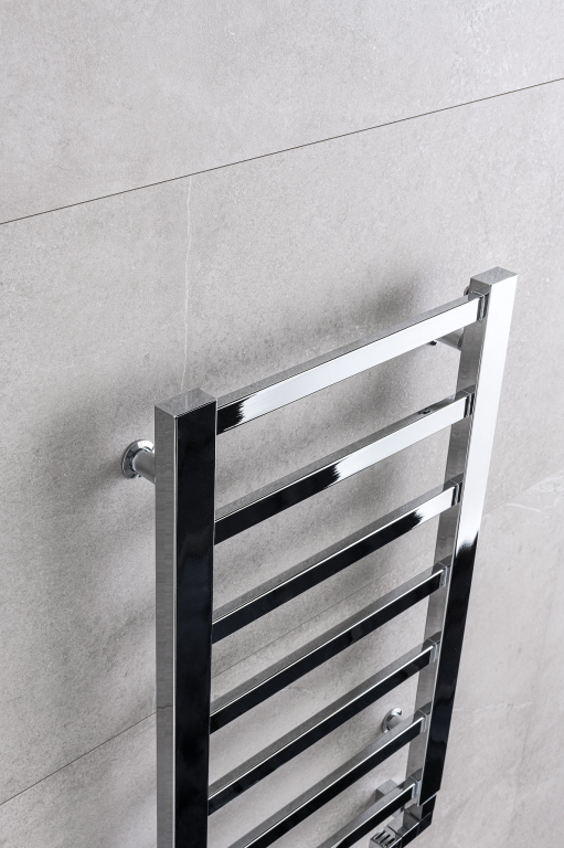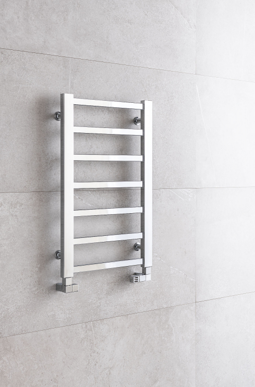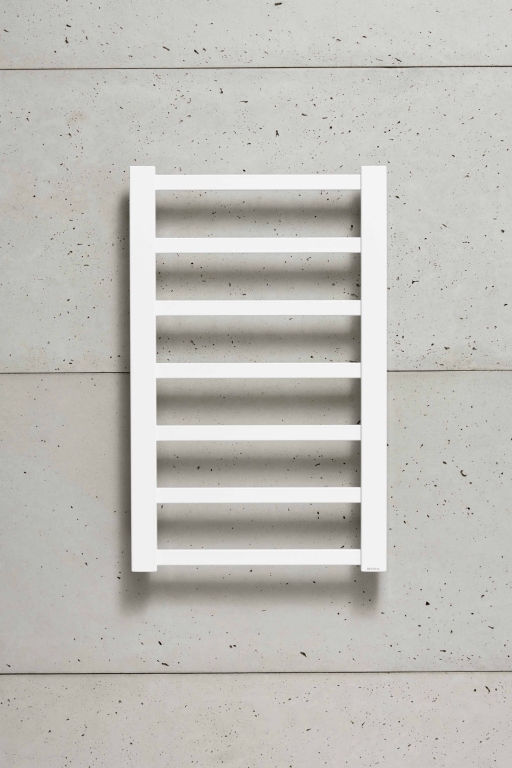 Koupelnový radiátor s obdélníkovými profily trubek a výjimečným designem.