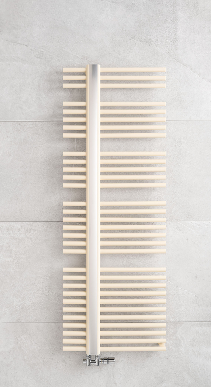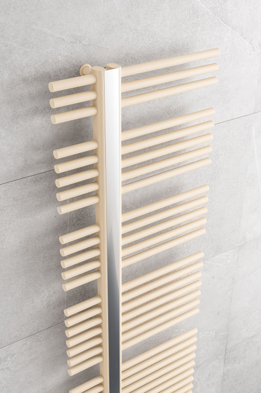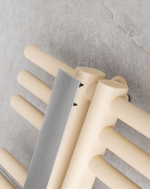Konstrukce tohoto radiátoru do koupelny nabízí výhodu jednoduchého zavěšení ručníků ze strany.