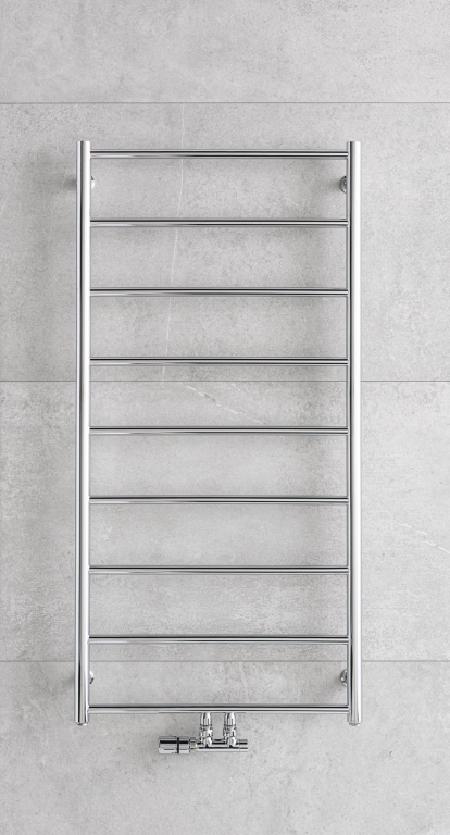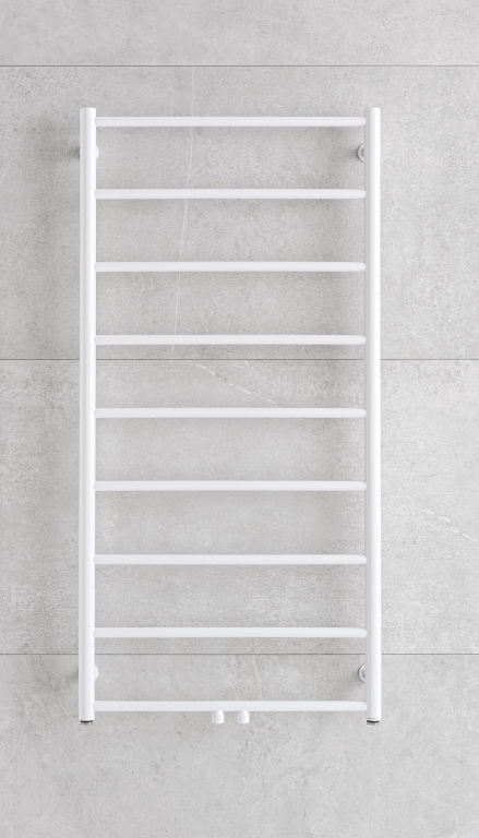 Radiátor Naas vyniká čistým designem. Možnosti připojení jsou na střed nebo po stranách.