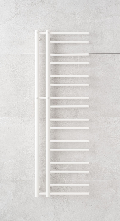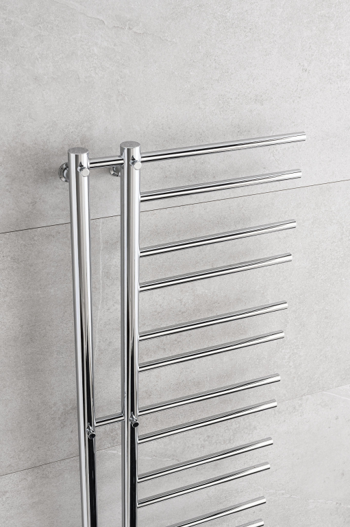 Radiátor nabízí výhodu zavěšení ručníků ze strany nebo pomocí háčků, které jsou umístěny na 2 vertikálních trubkách.