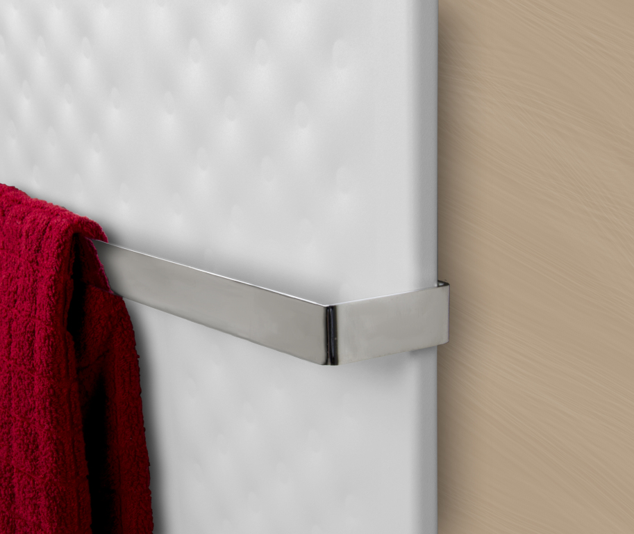 Díky extrémně ploché konstrukci a nízkému obsahu vody je dosaženo velmi krátké fáze ohřevu a reakční doby. Součástí dodávky jsou 2 ks. držáků na ručníky v provedení chrom.