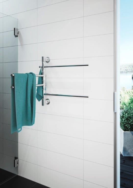 Otočná ramena poskytují minimalistický vzhled. Ramena sušáku lze otočit o 180°, umožňují tak snadné zavěšení ručníků.