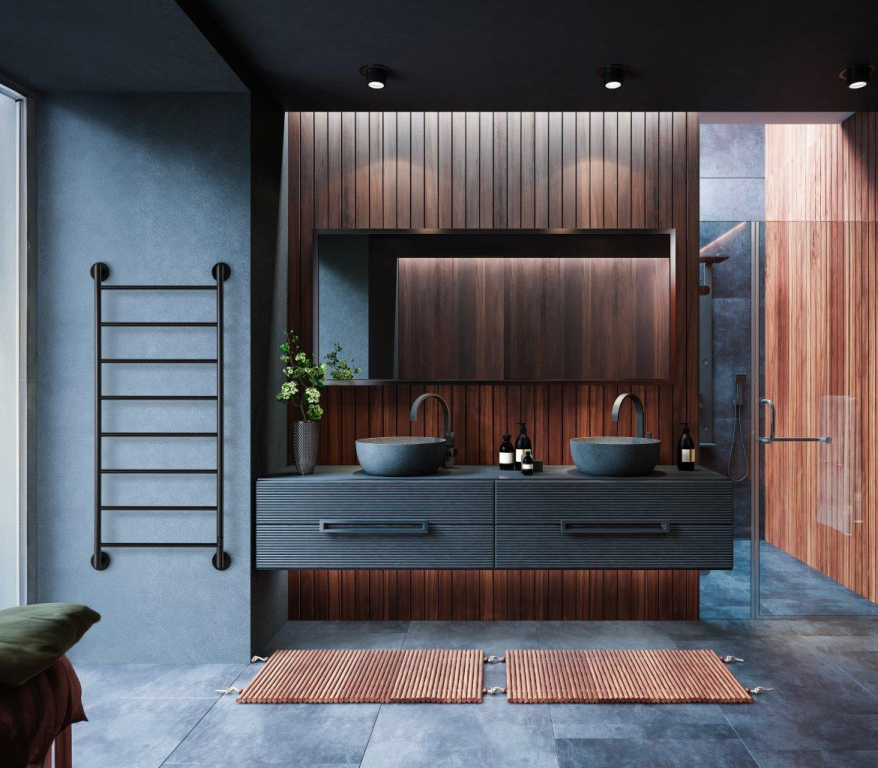 Elektrický sušák ručníků s nízkou spotřebou energie je dodáván v provedení leštěná nerez nebo černá.