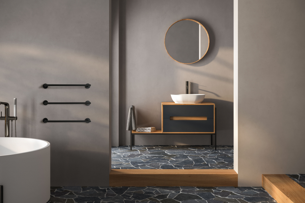 Suszarka Inga posiada ukryte podłączenie ze ściany (patrz instrukcja - materiały do pobrania). W zależności od strony podłączenia elektrycznego wyróżnia się wersję prawostronną i lewostronną. Jeżeli przyłącze elektryczne znajduje się po prawej stronie, sterowanie suszarką znajduje się po lewej stronie = wariant prawostronny IN1-R i odwrotnie.