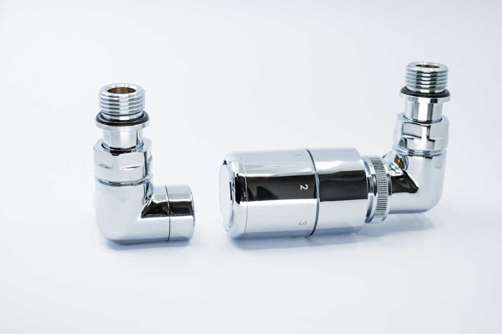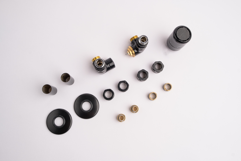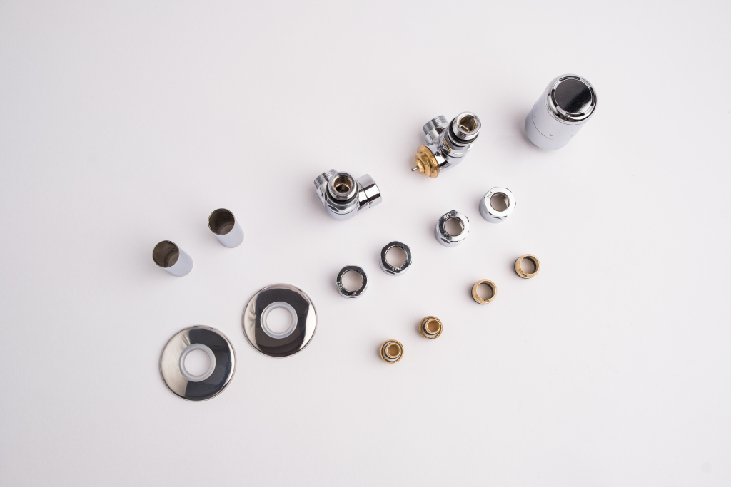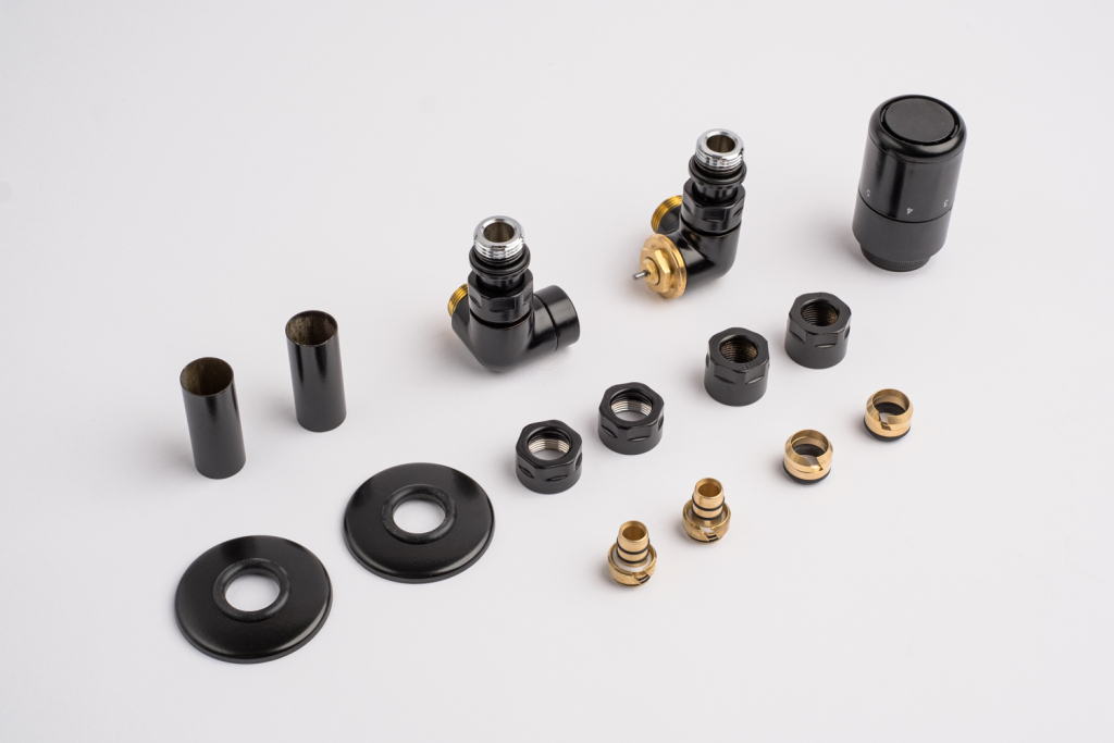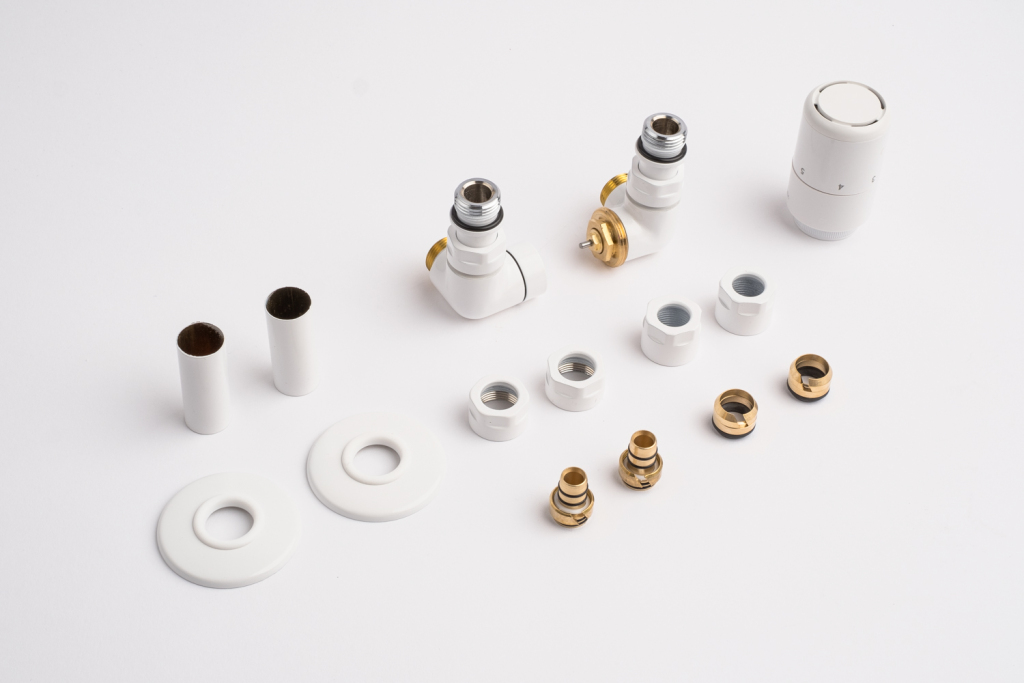 Kompletní sada obsahuje kromě ventilu také krycí rozety a svěrné šroubení pro připojení na měď  15 mm a Alupex 16 mm.