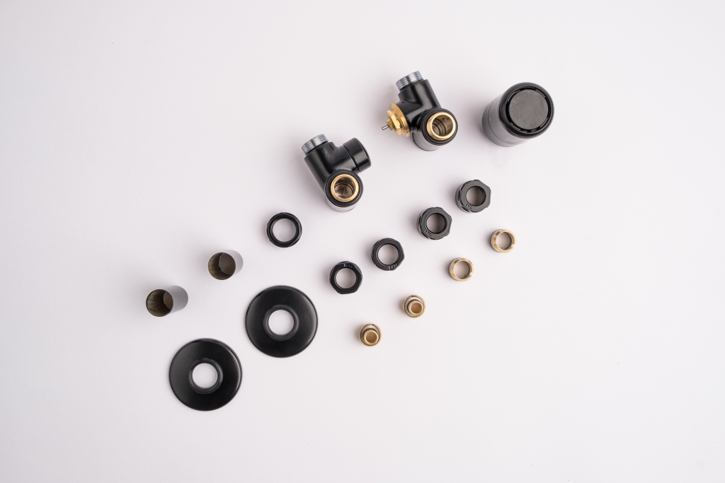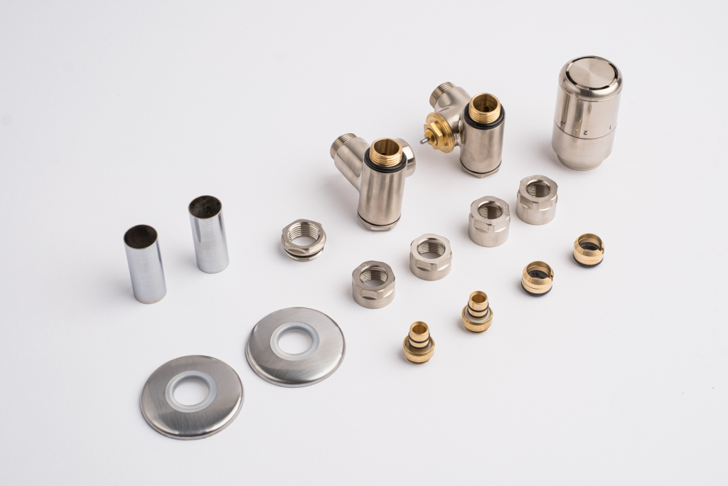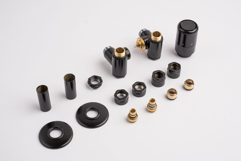 Kompletná sada okrem ventilu obsahuje aj krycie rozety a svorné šróbenie na pripojenie na meď 15 mm a Alupex 16 mm.